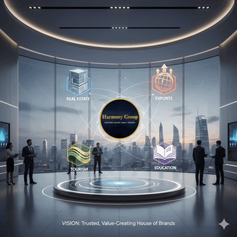 To position Harmony Group as Pakistan’s most trusted, value-creating House of brands — delivering stakeholder prosperity and leading excellence in Real Estate, Tourism, Exports, and Education.